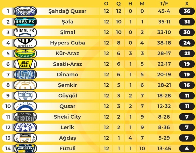 Bu gün futbol üzrə Azərbaycan İkinci Liqasında 2024/2025-ci illər mövsümünün 12-ci turunun oyunlarına yekun vurulub.