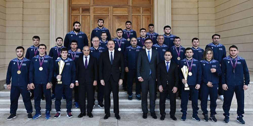 Bir müddət bundan əvvəl elə bu otaqda gənc güləşçilərlə görüş zamanı onlara bildirmişdim, yarışa çıxanda unutmamalıdırlar ki, müzəffər ölkəni və qalib xalqı təmsil edirlər. Mən onları da gənclər arasında Avropa çempionatında birinci yerlə bağlı ürəkdən təbrik edərkən demişdim ki, onlar gələcəkdə də bizi sevindirməlidirlər, böyüklər arasındakı yarışlarda çıxış edərkən bu uğurları təkrar etməlidirlər.
