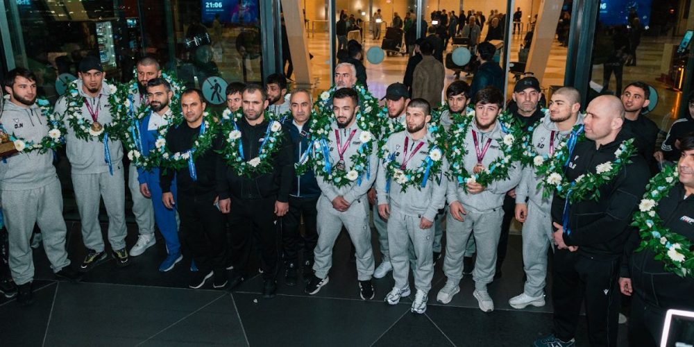 3 qızıl, 2 gümüş və 1 bürünc medal qazanan yığmamız üçün Heydər Əliyev Beynəlxalq Aeroportunda təntənəli qarşılanma mərasimi keçirilib.
